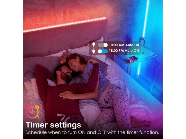 - Create Helpful Schedules:Preset your favorite color and brightness to turn it ON or OFF automatically. This leds lights gradually wakes you up in the morning and accompanies you to sleep in the dark night, creating a colorful smart home lighting system.