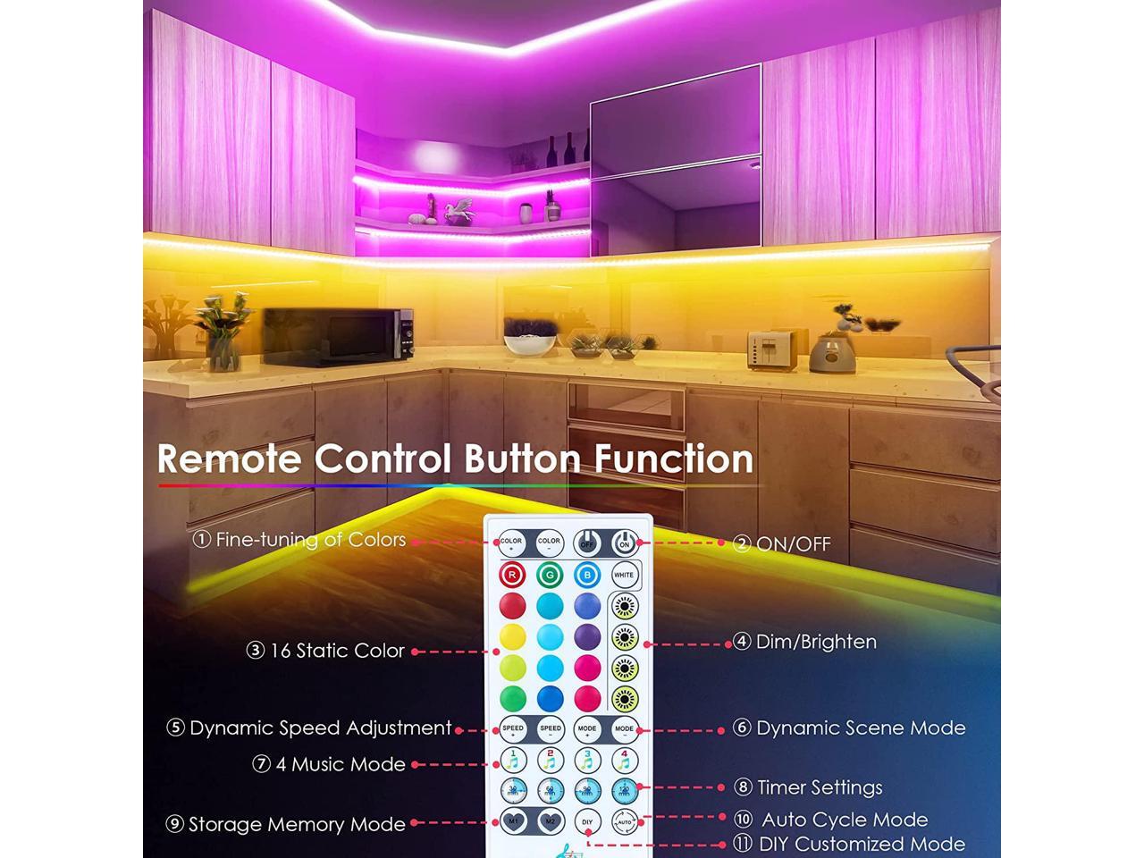 - More Control Options:Upgraded model remote control and control box. Powerful remote can provide 16 static and 20 dynamic lighting modes, dim/brighten, DIY colors, sync music and timer mode, etc.