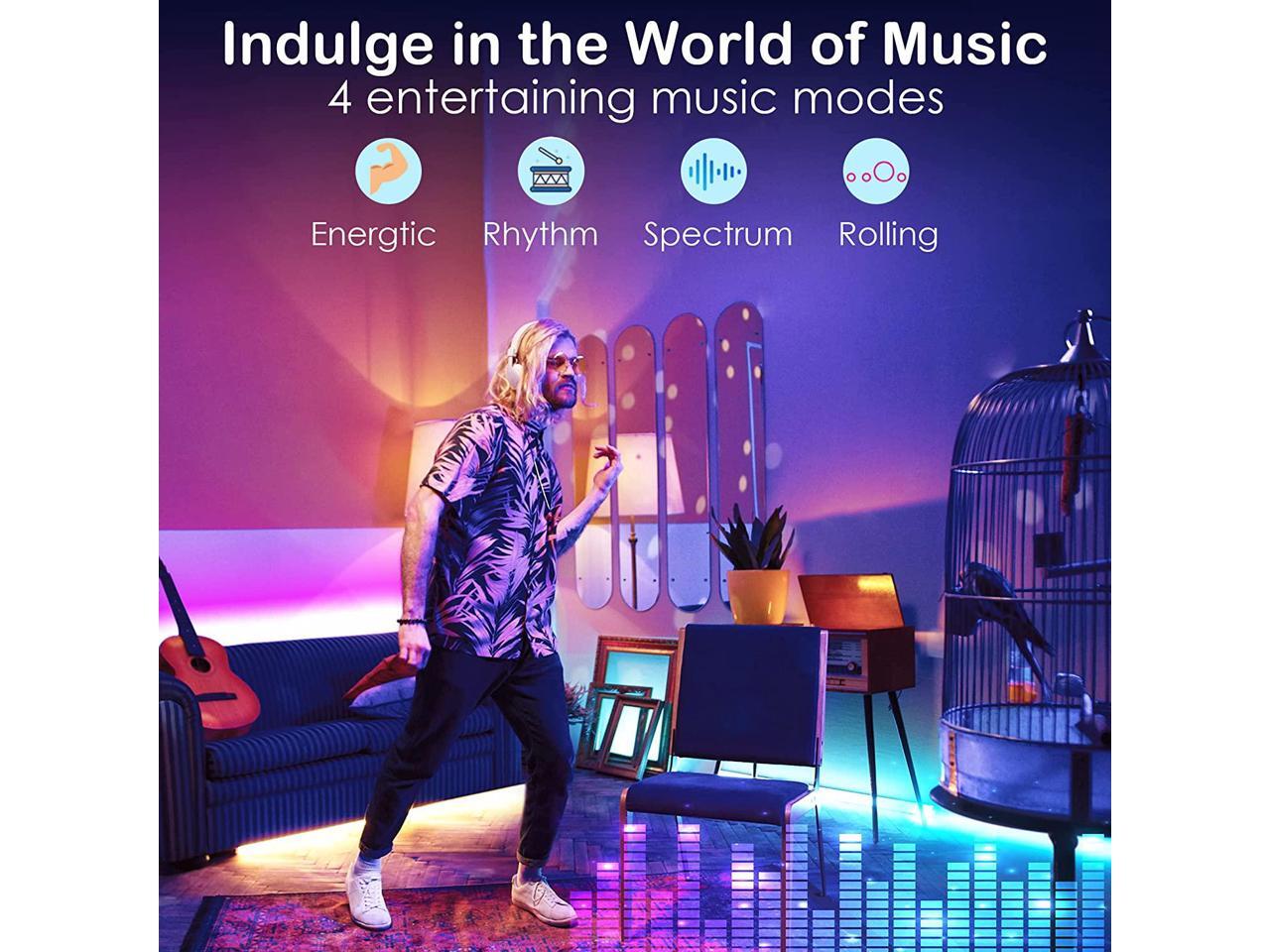 - Enhanced Music Mode:With a built-in high-sensitivity mic, the rgb led light strip can be synchronized with any music type. Choose from 4 music modes and your lights will dance to the rhythm of your favorite song in real time, energizing your mood effortlessly.