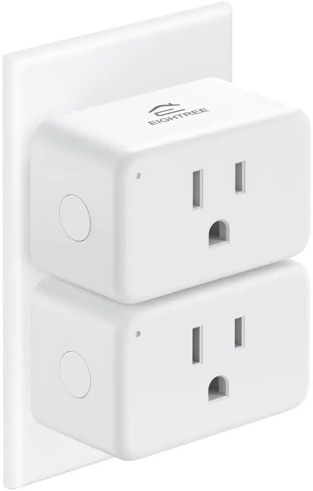 The EIGHTREE mini smart plug allows you to use two plugs in one outlet simultaneously.
