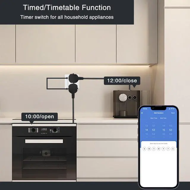 Control high-power appliances with your voice or phone. EU plug. Dual outlets. 16A capacity.