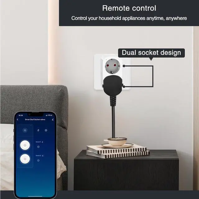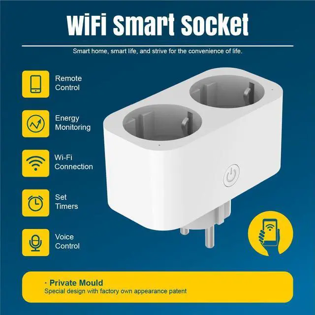 The 16A Smart WiFi Socket (EU Plug) is built for European homes and high-power devices. With dual independent outlets, Tuya smart platform compatibility, and voice control support, you can automate heaters, air conditioners, water heaters, and kitchen appliances all from anywhere in the world.