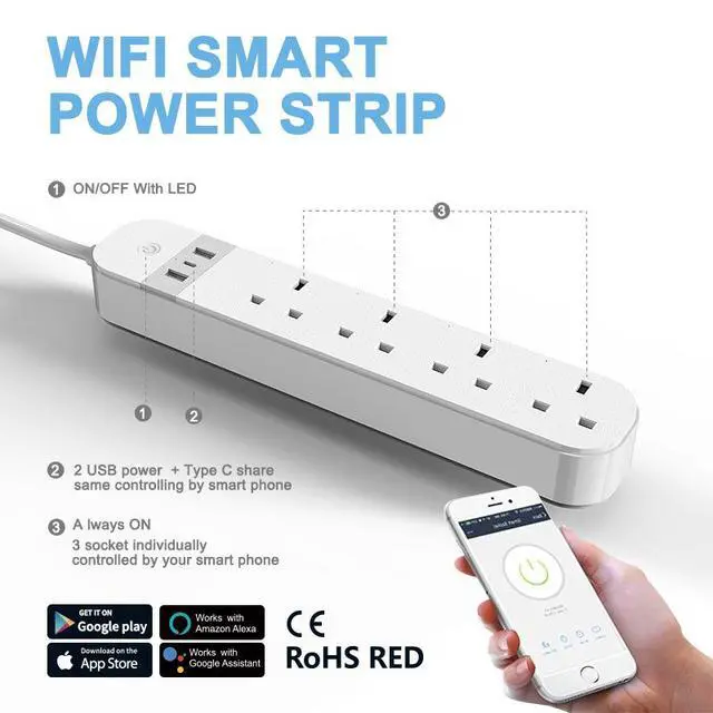 The WiFi Smart Power Board turns any British home into a smart home. With 4 independently controlled AC outlets, 3 USB ports delivering 30W fast charging, Tuya app remote control, and full voice assistant compatibility, this power strip is the ultimate command center for your desk, living room, or home office.