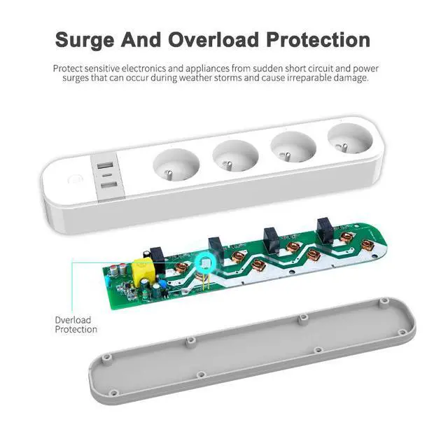 The WiFi Smart Power Board (EU Plug) is built for European homes with high-power appliances. With 4 independently controlled AC outlets, USB-A and USB-C fast charging ports, 16A capacity (3680W), and full Tuya smart platform integration, this power strip handles everything from space heaters to phone charging all controlled by your voice or phone.