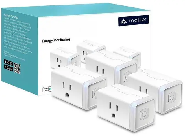 Bobobigo Matter Smart Plug w/ Energy Monitoring, Compact Design, 15A/1800W Max, Super Easy Setup, Works with Apple Home, Alexa & Google Home, UL Certified, 2.4G Wi-Fi Only, White, (4-Pack)