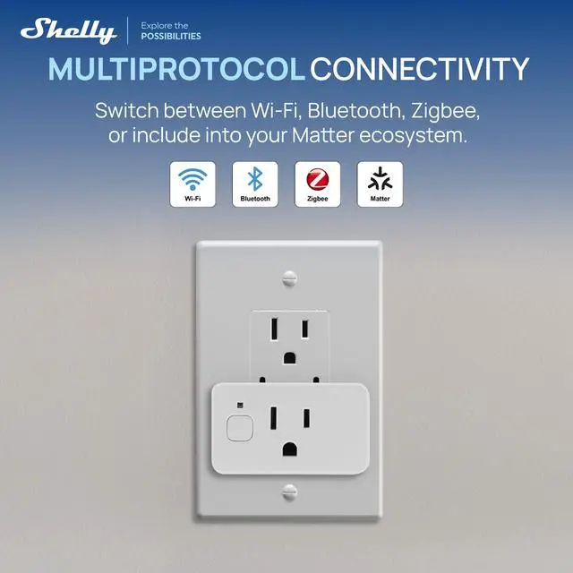 Control, automate and monitor the energy consumption of lamps, fans, heaters, hot irons, kitchen appliances, computer equipment and other plug-in devicesup to 1800W at 15A. Wi-Fi, Matter and Zigbee connectivity plus Bluetooth gateway functionality. Supports schedules, timers, voice control, energy monitoring, local control, Home Assistant, custom scripting and more.