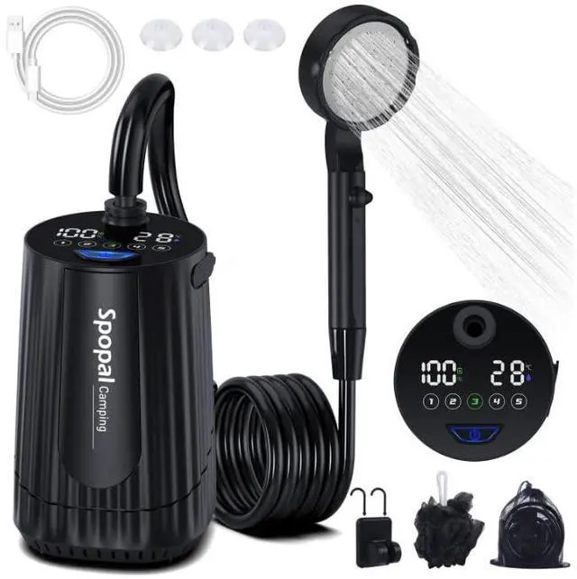 ![Alt view image 5 of 7 - Portable Shower for Camping, [Upgraded] 10000mAh Rechargeable Camping Shower with 5 Adjustable Speeds,Premium LED Display, IPX8 Waterproof Outdoor Shower Kit for Hiking, Car, Pet, Travel (BK)](https://c1.neweggimages.com/productimage/nb640/C4WXD2603070F6Q8O67.jpg)