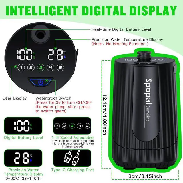 ![Alt view image 4 of 7 - Portable Shower for Camping, [Upgraded] 10000mAh Rechargeable Camping Shower with 5 Adjustable Speeds,Premium LED Display, IPX8 Waterproof Outdoor Shower Kit for Hiking, Car, Pet, Travel (BK)](https://c1.neweggimages.com/productimage/nb640/C4WXD2603070F6Q6HB9.jpg)