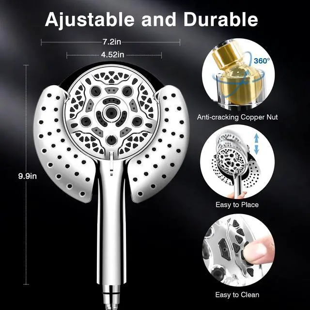 The shower head combo with touch-clean nozzle design, calcium can be cleaned off with touch of your finger.