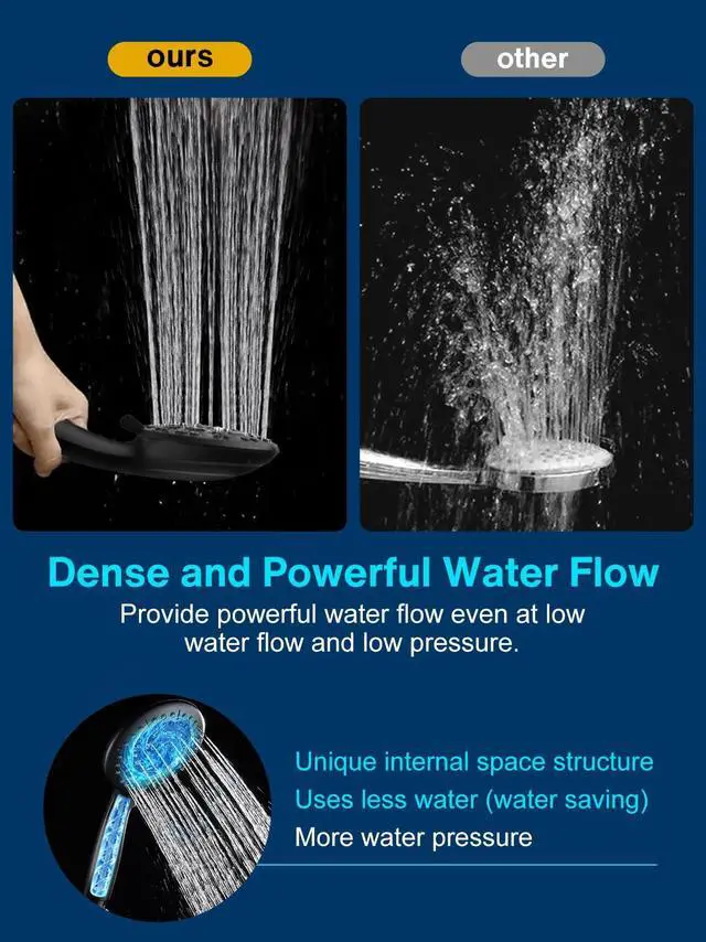 Strong Water PressureOptimized internal water channel design delivers dense, powerful streams that feel like a full-pressure shower even in low water pressure homes. Get a thorough, invigorating rinse while using less water and helping reduce utility costs