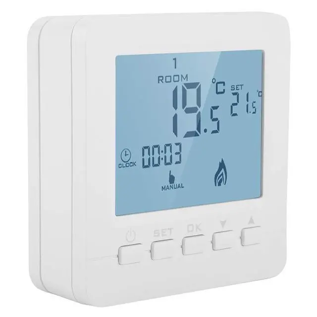 This thermostat is made of material, and to use. It is easy to install and convenient to use. It has a child lock function to prevent malfunction and malfunction of the data memory in case of power failure.