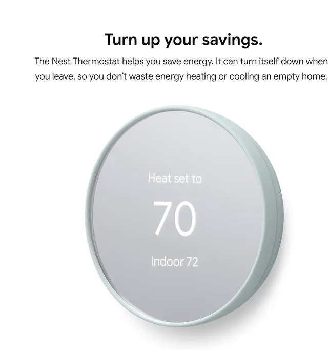 Nest Thermostat turns itself down when you leave, so you dont waste energy heating or cooling an empty home; easily program an energy efficient schedule in the Google home app on your Android or iPhone