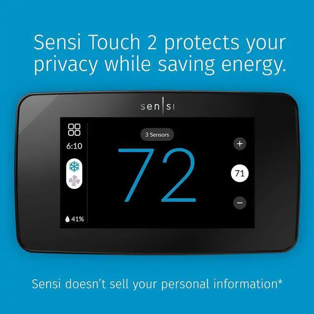 Sensi Touch 2 Smart Thermostat with Touchscreen Color Display, 100 Years of Expertise, Programmable, Wi-Fi, Data Privacy, Easy DIY, Works with Alexa, Energy Star Certified, ST76, C-Wire Required