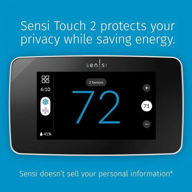 Sensi Touch 2 Smart Thermostat with Touchscreen Color Display, 100 Years of Expertise, Programmable, Wi-Fi, Data Privacy, Easy DIY, Works with Alexa, Energy Star Certified, ST76W, C-Wire Required