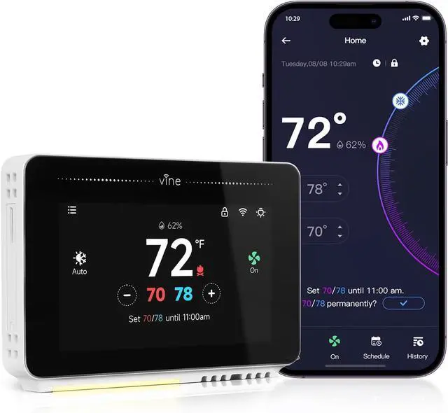 Remote & Voice ControlManage your home's climate from anywhere using the Vine Thermostat or Smart Life app. Works with Alexa and Google Home to control the wifi thermostat with your voice, providing hands-free operation