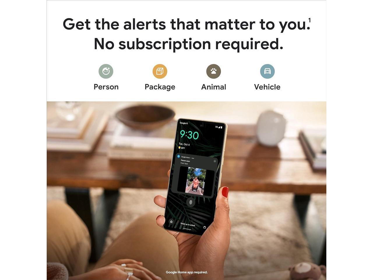 - See what you missed with 3 hours of free event video history included in the Google Home app; watch 2-second previews and 5-minute clips of important activity