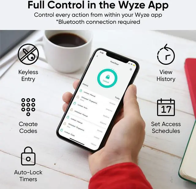 View the lock/unlock history: Bluetooth connection required. Know who came and went in the Wyze app. You can see how it unlocked, the exact time, and if there were any failed code attempts.