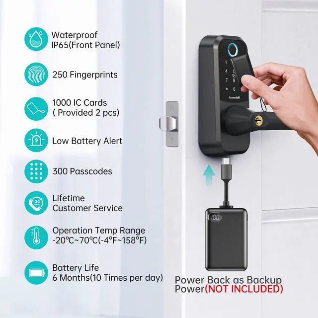 When the power is low, use the USB-C charging cable to charge your smart lock to unlock it. Avoid being locked out of the door.