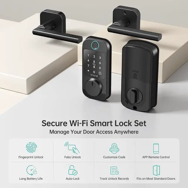 SMONET M6 WiFi Smart Front Door Lock with Lever Set