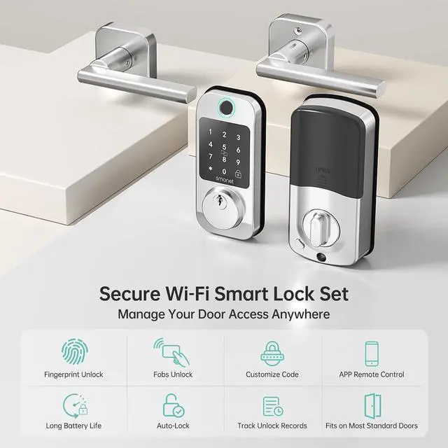 SMONET M6 WiFi Smart Front Door Lock with Lever Set