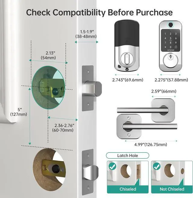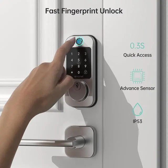 • [Advanced and Smooth Fingerprint] SMONET front door lock set can recognize your thumbprint in just 0.5 seconds, and unlock your door in 1 second, faster than fumbling for your keys.