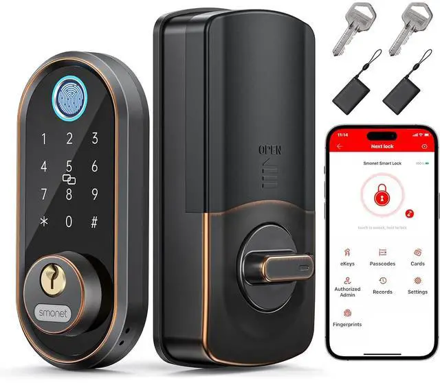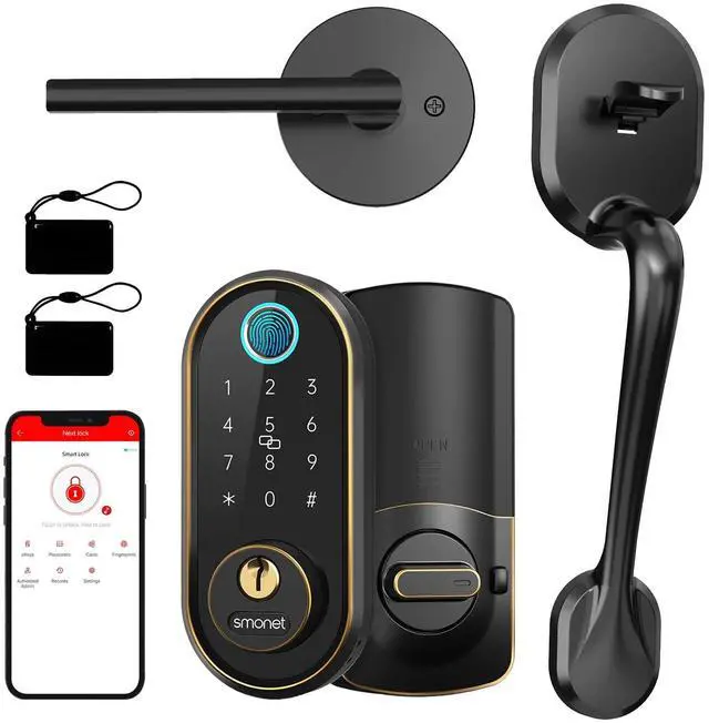 Smart Door Lock: Say goodbye to fumbling for your keys, the SMONET Smart Lock is the solution you need! With the ability to recognize your fingerprint in just half a second and unlock your door in just one, it's the fastest option for keyless entry. Plus, you can even connect it to Alexa or Google Assistant for voice control.