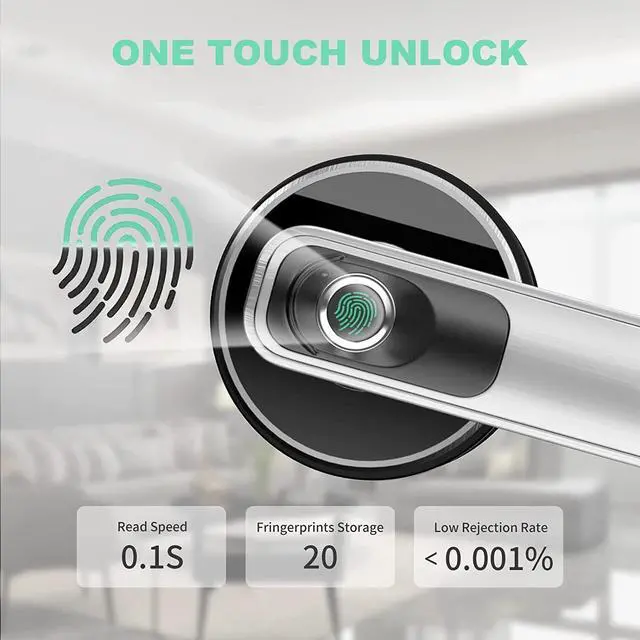 • Lock and unlock your door in a single motion - by scanning your fingerprints as you grip the door handle. A lightning speed 0.1 seconds is all that is required to open. Much faster than any key.