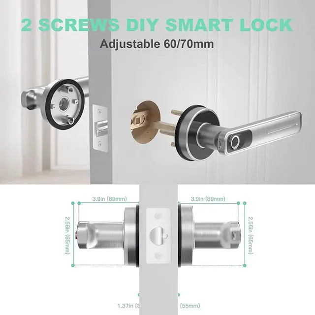 • No wires required. Fits standard-sized doors of 1-3/8'' to 2-1/8'' (35 to 55mm) door thickness, adjustable latch 2-3/8''(60mm) or 2-3/4''(70mm). Suitable for both left and right-handed doors.