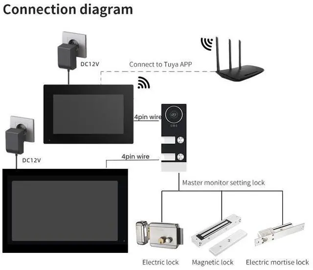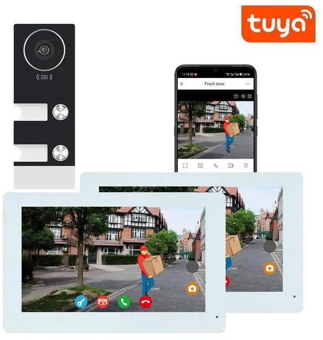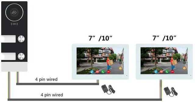 | Included Components: | 12V 2A power adaptor, 1x doorbell + 2x 7in White monitor, DC cable, Hex screwdriverand Screws, manual |