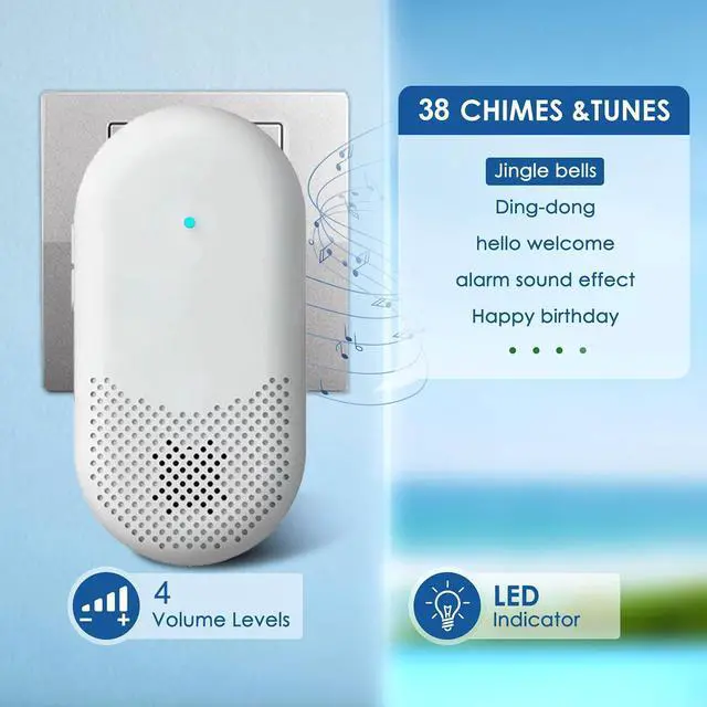 There are 38 unique melodies for you to choose from, and the volume can be adjusted within 4 levels (up to 115 dB), bringing you a personalized doorbell experience. LED indicator lights are very suitable for people with hearing loss or those who prefer quietness.