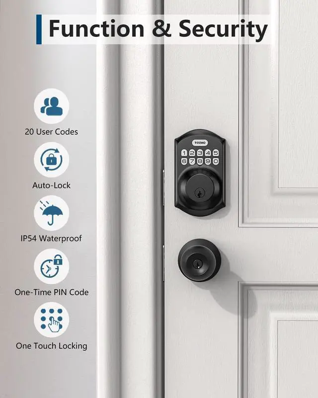 Keyless entry deadbolt with matching handle set — no extra accessories needed. The elegant handle enhances your front door with a stylish touch