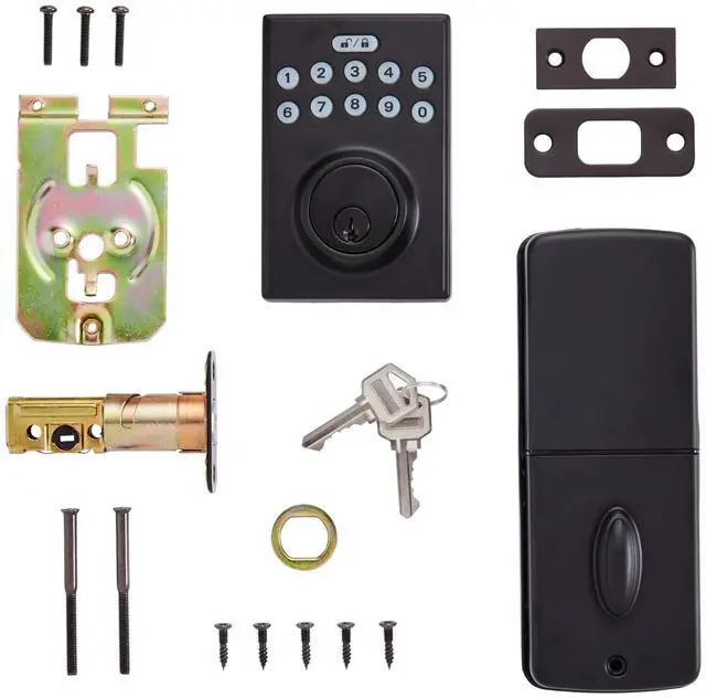 This versatile keypad door lock combines the convenience of keyless entry with the reliability of a traditional key option. Great for front doors, it features an electronic locking system that allows easy access while enhancing security. With six customizable user codes and the ability to assign temporary single-use codes for visitors, it is designed for flexibility. The lock includes a one-touch and timed locking feature, as well as customizable automatic locking set between 10 to 99 seconds. Ideal for modern homeowners, it offers the choice of using a keyless entry or the traditional key option.