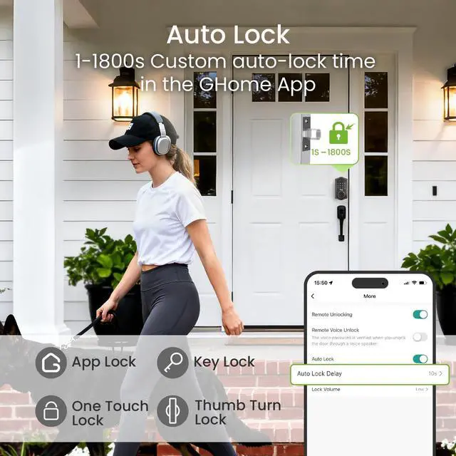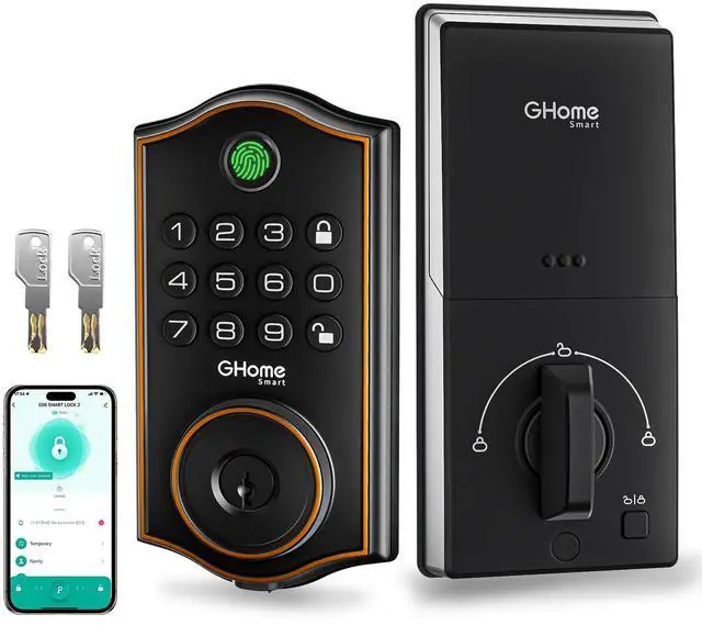 GHome Smart deadbolt lock, Keyless Entry Door Lock for Front Door, App Remote Control, Auto Lock, Easy Installation, Fingerprint Door Lock with Keypad for Home, Airbnb, Apartment, Garage
