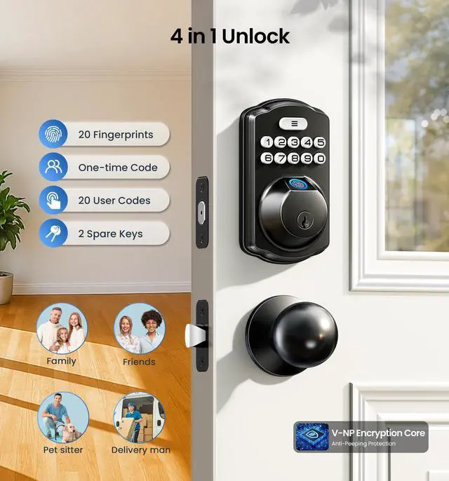 Unlock in 4 ways:fingerprint, passwords, one time code, keys.
