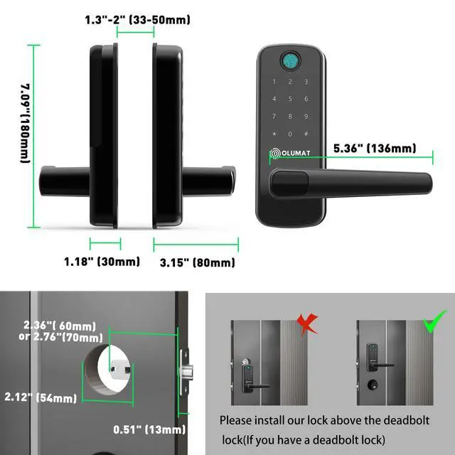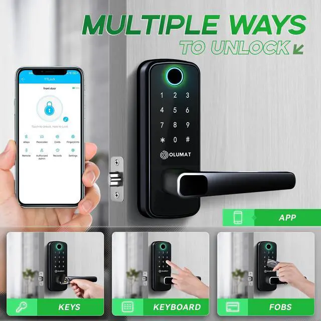 OLUMAT smart locks offer a blend of fashion and security in design, along with a convenient smartphone app. They are compatible with both wooden and security doors. Forget about the worries of forgetting to lock your door completely. The smart lock automatically locks with the set time, bringing you a marvelous experience of smart life.
