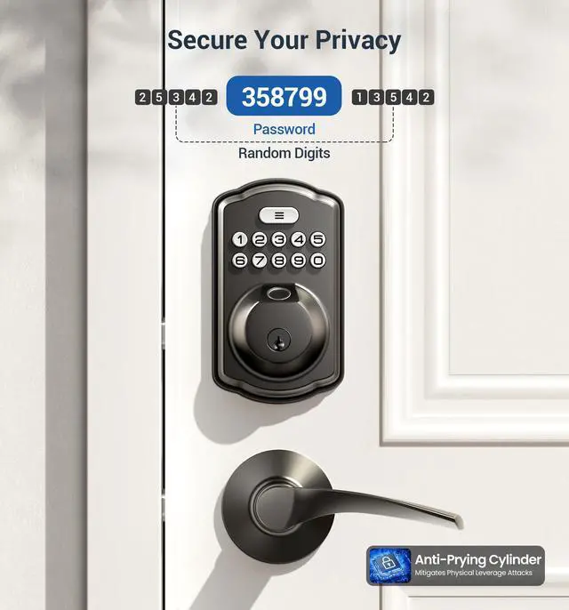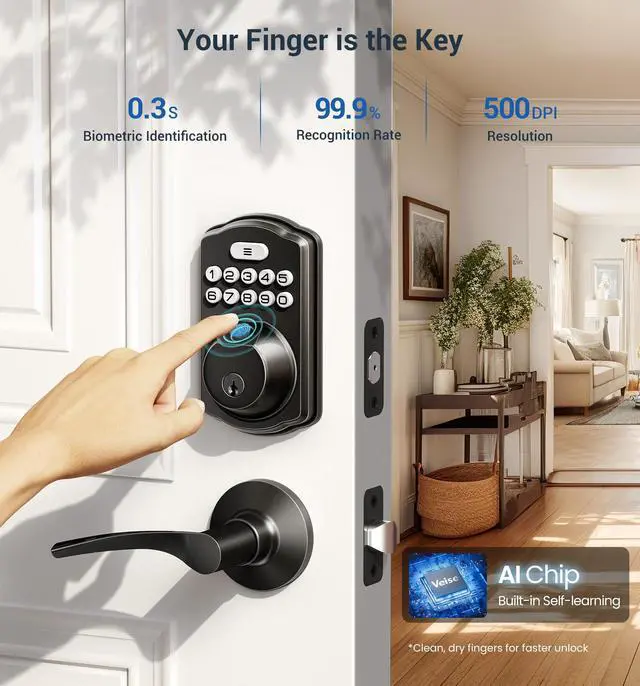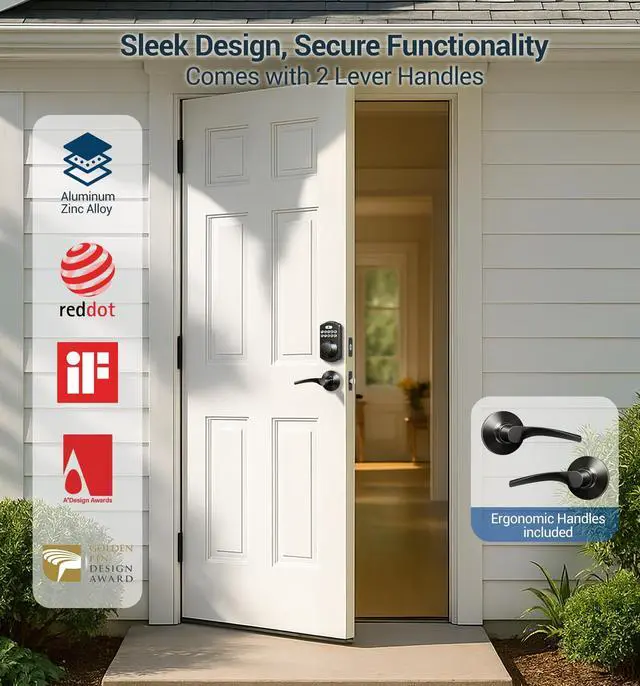 The door lock is user-friendly and versatile, providing fingerprint, code, and traditional key access, suitable for individuals of all ages—adults, children, and seniors.