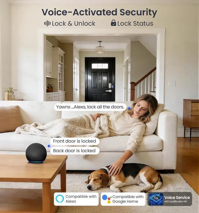 Lock, unlock, or check status for doors your home with simple voice commands to your assistant