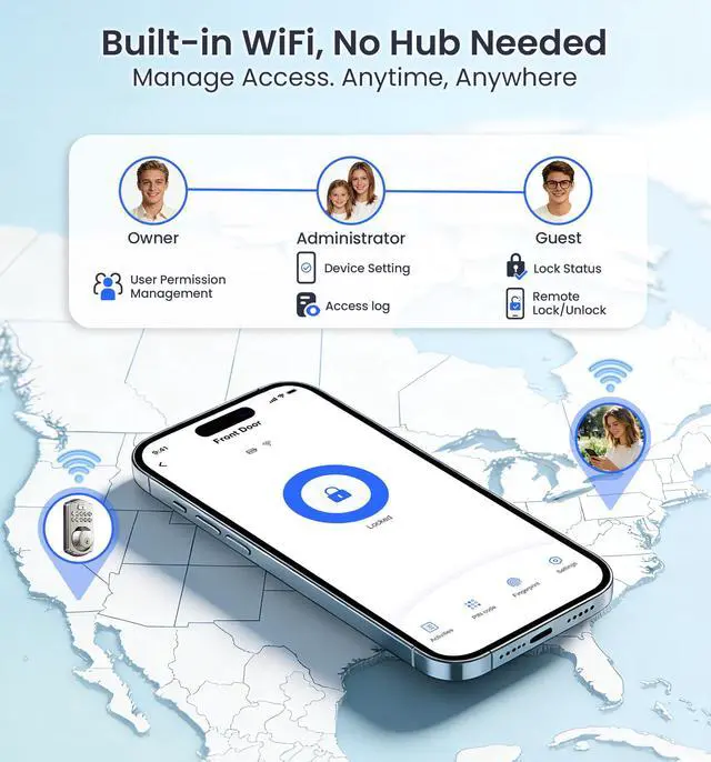 Control multiple locks remotely and assign roles in App--family or guest