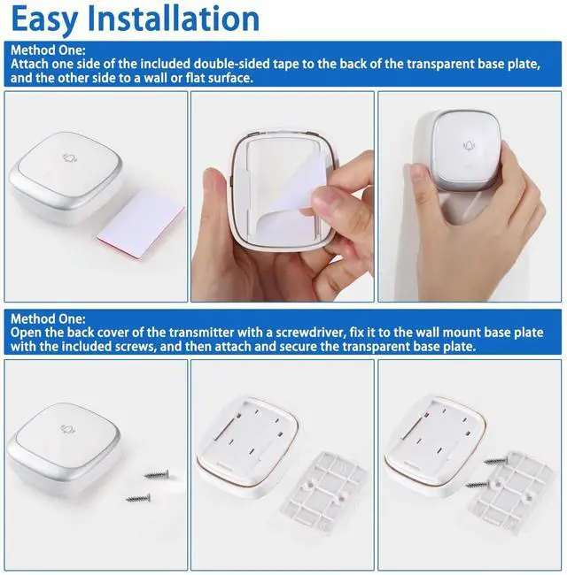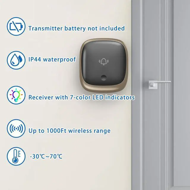 Self-Powered Wireless Doorbell with LED Visual Alerts 38 Melodies Waterproof Dustproof Long Range Easy Installation