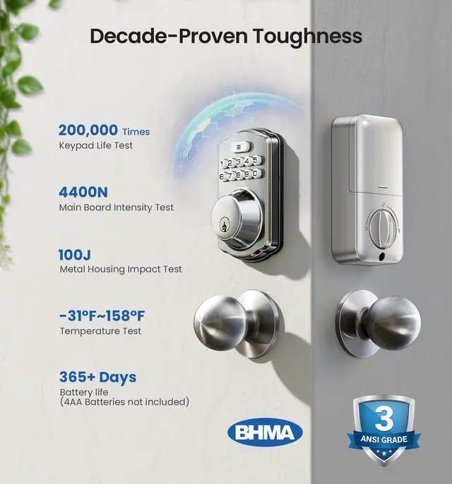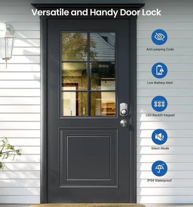 | Special Feature | Anti-Peeping Password, Auto-Lock, Back-Lit Keypad, Keypad Deadbolt with Door Knobs, Codes & Keys Unlock, 20 individual User Codes, One-time Codes, Weather Resistant |