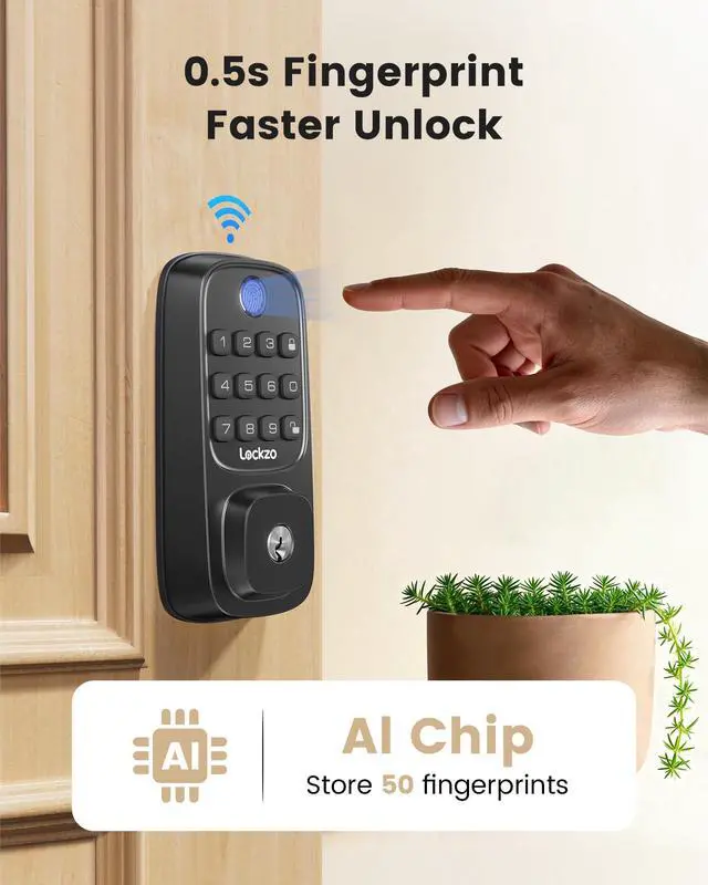 Fast & Accurate Fingerprint:This advanced door lock unlocks in 1 second. It features cutting-edge 99.99% accurate fingerprint recognition and stores 50 fingerprints, making your finger your key.