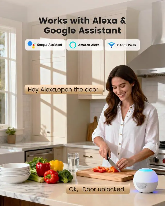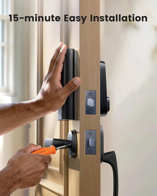 Built-In Wi-Fi:Control your door lock anytime, anywhere via the app. Lock/unlock remotely, set one-time passcodes, and manage users. With built-in Wi-Fi, no extra hub is needed.