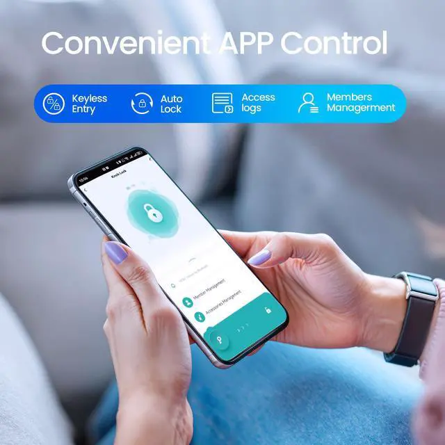1. Remote unlock/lock via Bluetooth (within 5-meter range). 2. Member management - add/remove users and fingerprints. 3. Access logs. 4. One-time passwords. 5. Multiple modes - Silent, Vacation, and Quick Unlock modes.