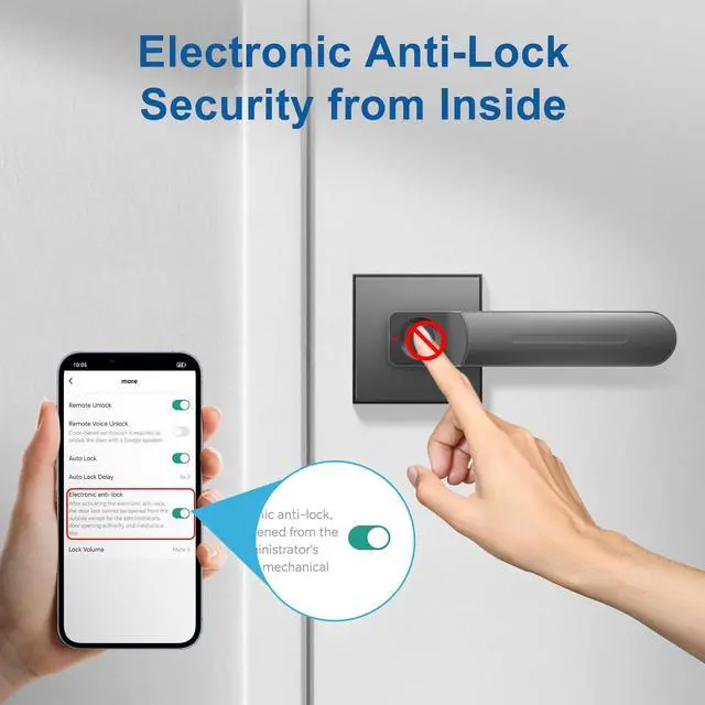 Activate the anti-lock through the app to block outside access. Once enabled, only admin fingerprints or physical keys can unlock from outside—ideal for added privacy and advanced home protection.