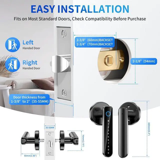 Please check the Compatibility infographic above for specific requirement. Dimensions required: back panel sizes of 2-3/8 inches (60mm) and 2-1/8 inches (70mm), and door thicknesses from 1-3/8 inches to 2"-1/8" (35mm-55mm)