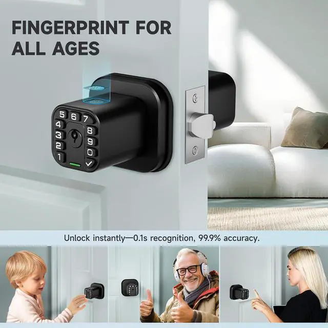 This biometric door knob stores up to 100 fingerprints and features advanced AI learning technology