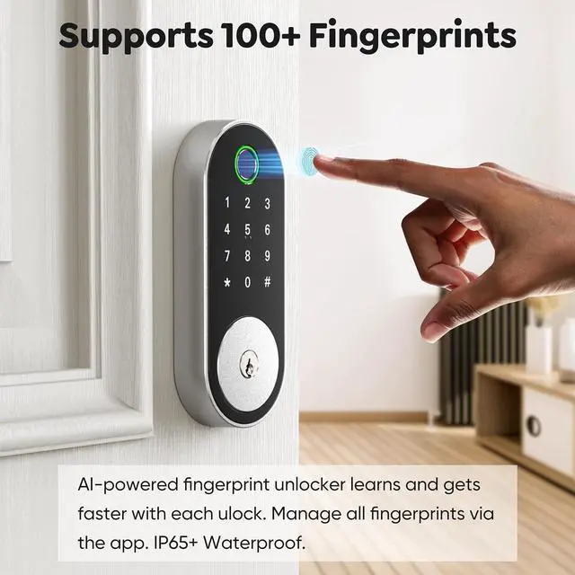 Multiple Ways to UnlockFingerprint, keypad code, app, fob, or physical key. Store up to 100+ fingerprints & 100+ codesideal for kids, guests, seniors, or short rental hosts.