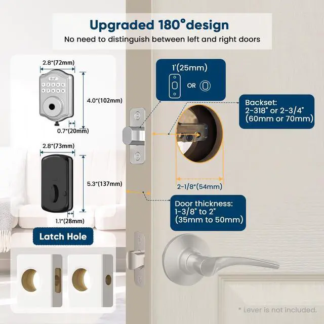 - Easy to Install: This upgraded 180° design smart door lock compatible with most standard US left handed and right handed doors, which can be automatically identify left and right doors, no manual settings required. Voice navigation function which supports multiple languages makes your installation and use more convenient and simple.