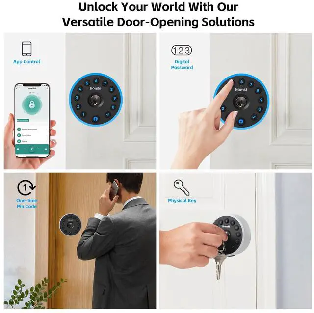[Multiple Entry Modes]: This smart deadbolt lock supports password unlocking via keypad doorknob, smartphone intelligent unlocking, one-time pin code unlocking, and also comes with two spare physical keys. With a variety of entry modes, it comprehensively caters to daily needs, ensuring safer and more flexible access.