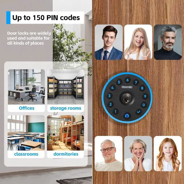 [Convenience of Keyless Access]: The keyless entry door lock deadbolt can store up to 150 access codes, allowing for easy access and management for family, friends, and guests. Bid farewell to the hassle of lost keys, forgotten door locking, and potential security breaches by strangers. Ideal for homeowners, business owners, and managers alike!